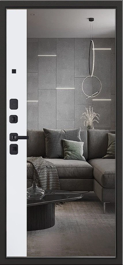 Надежная входная Дверь Scandi с зеркалом премиум класса по цене 44 735 руб. Большая толщина стали защитит от проникновения в ваш дом, квартиру или коттедж. Используется очень качественная фурнитура: замки, цилиндры, ручки, защелки. Покрытие и отделка двери изготовлено под внимательным контролем производителя. Дверь имеет долгий срок службы и гарантию.