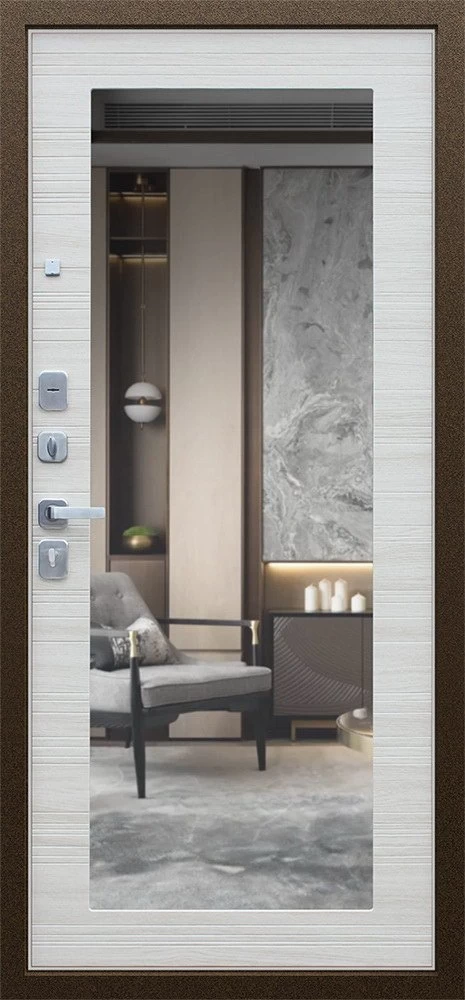 Надежная входная Дверь Спартак с зеркалом Акация Светлая Поперечная премиум класса по цене 35 935 руб. Большая толщина стали защитит от проникновения в ваш дом, квартиру или коттедж. Используется очень качественная фурнитура: замки, цилиндры, ручки, защелки. Покрытие и отделка двери изготовлено под внимательным контролем производителя. Дверь имеет долгий срок службы и гарантию.